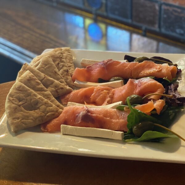 Smoked Salmon Platter $13.99 Smoked salmon with cream cheese and caper berries. Served with a side of pita bread.